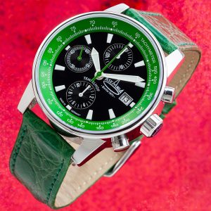 TEM-6214_Tempelhof Chronograph schwarz grün Beauty auf rotem Glitzer