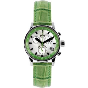 BEI-7652_Elly Beinhorn weisses Zifferblatt grüner Ring Frontal